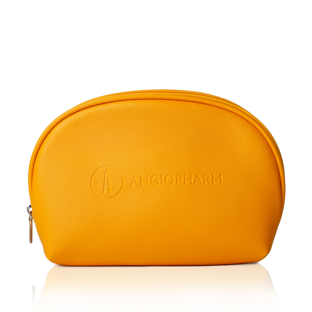 Легкая косметичка с логотипом ANGIOPHARM на молнии с одним отделением. Выполнена из экокожи с подкладом, внутренние швы обработаны и закрыты.