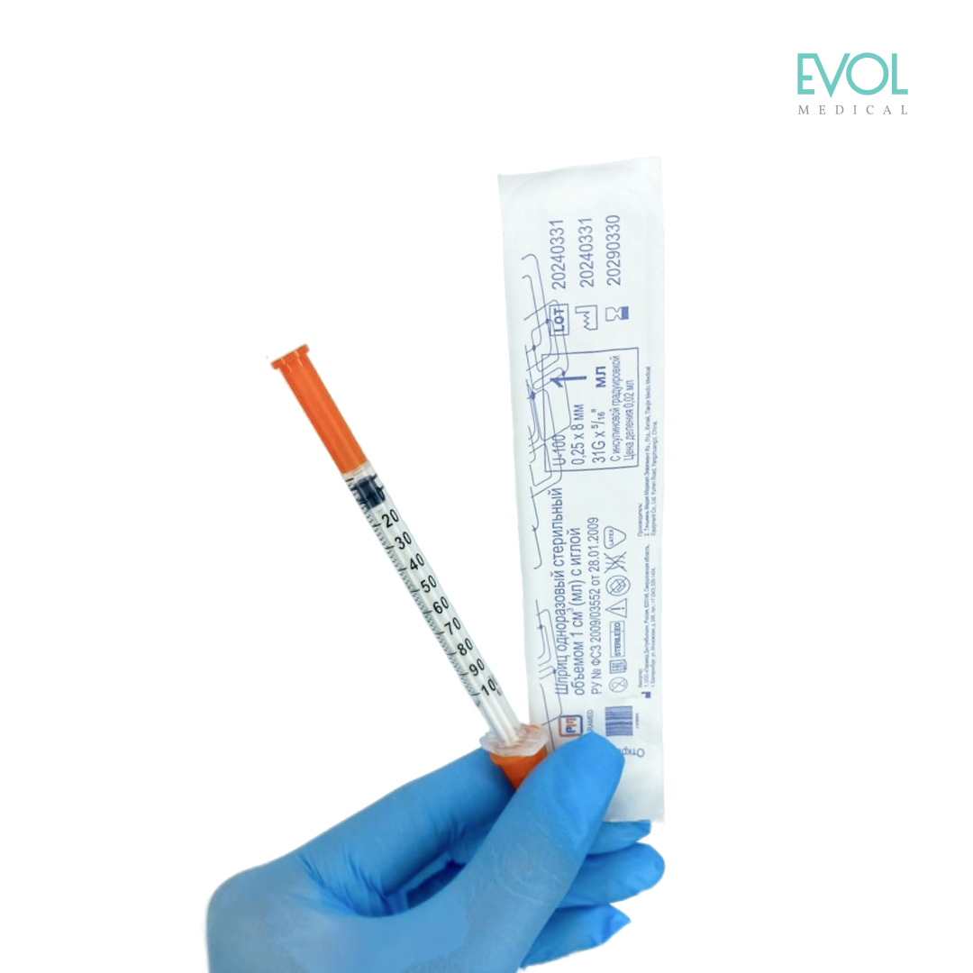 Шприцы инсулиновые инъекционные одноразовые стерильные PARAMED U100, с интегрированной иглой, для ботулинотерапии