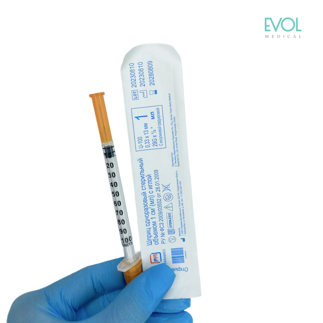 PARAMED 1 мл U100 (град. 0,02 мл), с интегрированной иглой 29G (0.33х13мм), для ботулинотерапии, для укола, 10 шт.