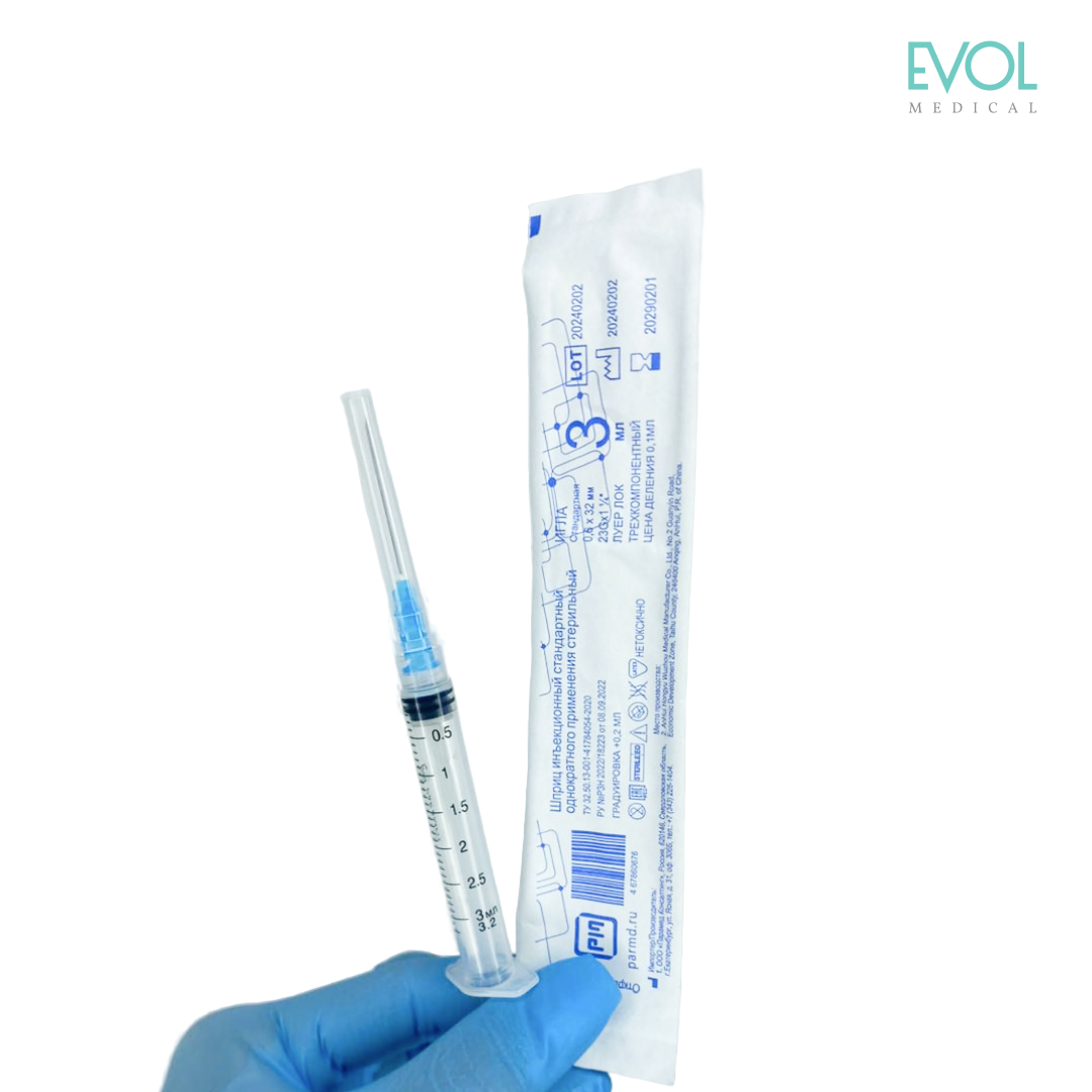 Шприц инъекционный 3 мл с закруткой (LUER LOCK) блистер с иглой, Paramed