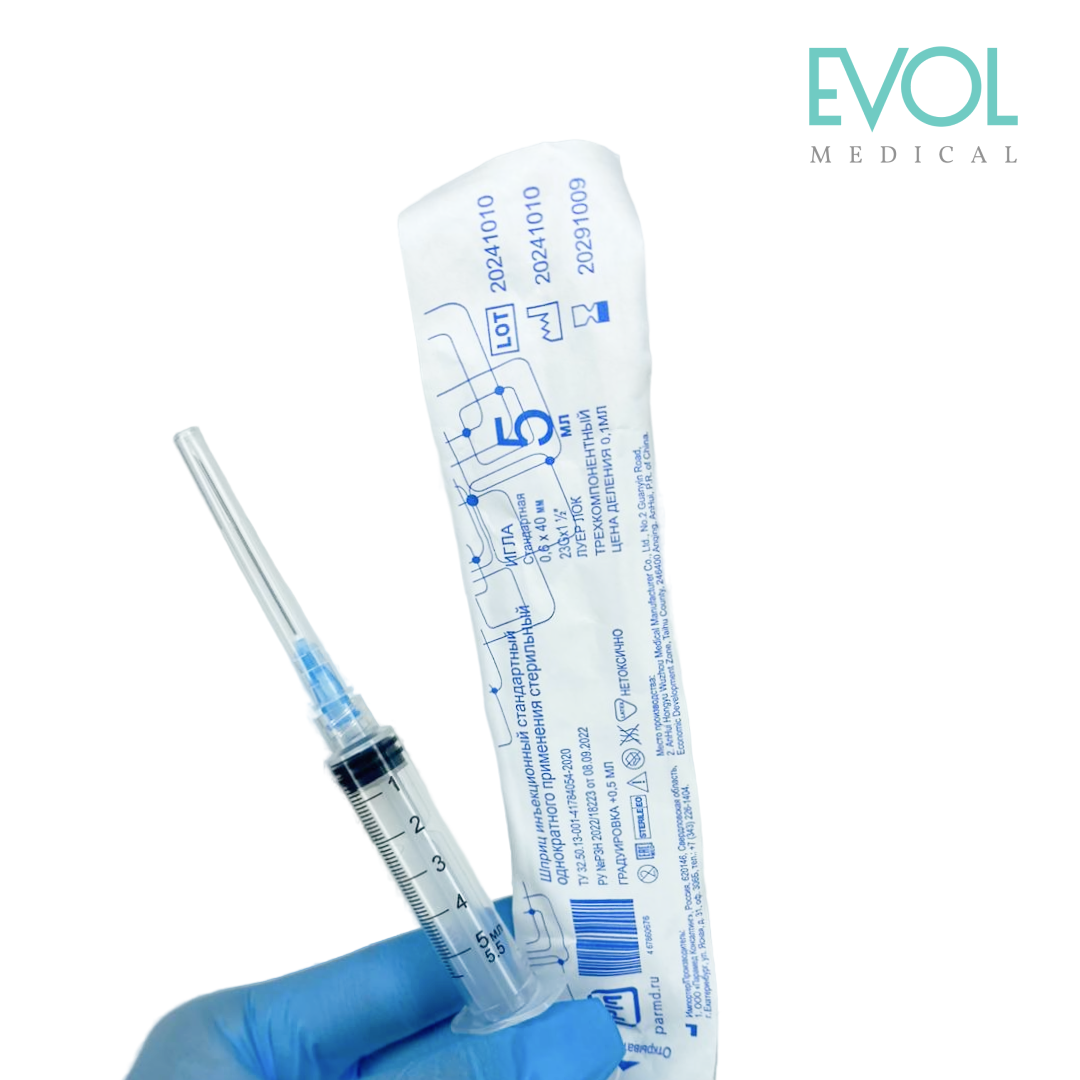 Шприц инъекционный 5 мл с закруткой (LUER LOCK) блистер с иглой, Paramed